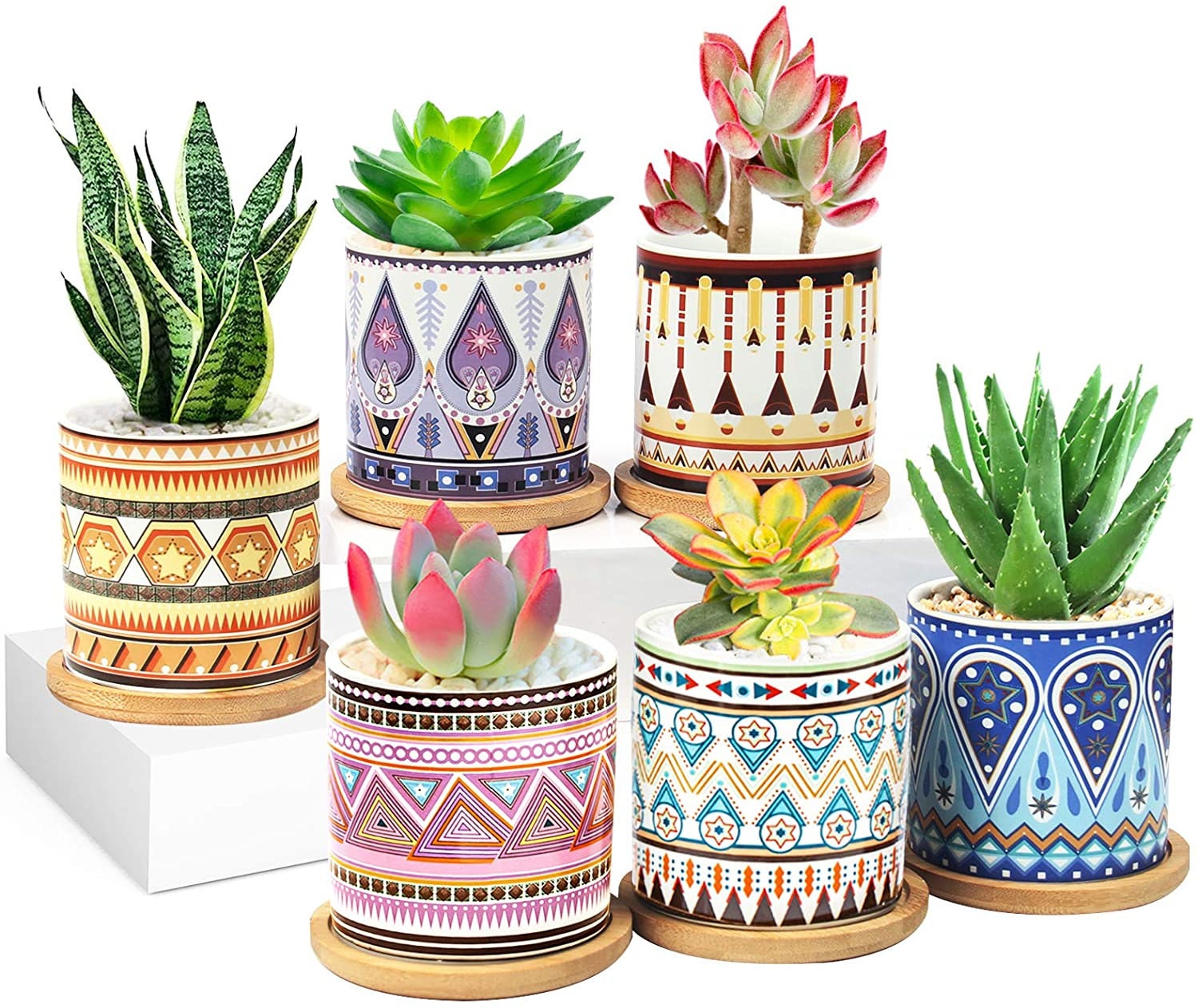 Oairse 11cm Ceramic Plant Pot Indoor Set 3 Boho Planter Flower Pots With Geometric Pattern For Succulents Snake Plant Herb Home Office Tabletop Windowsill Decor Amazon Co Uk Garden